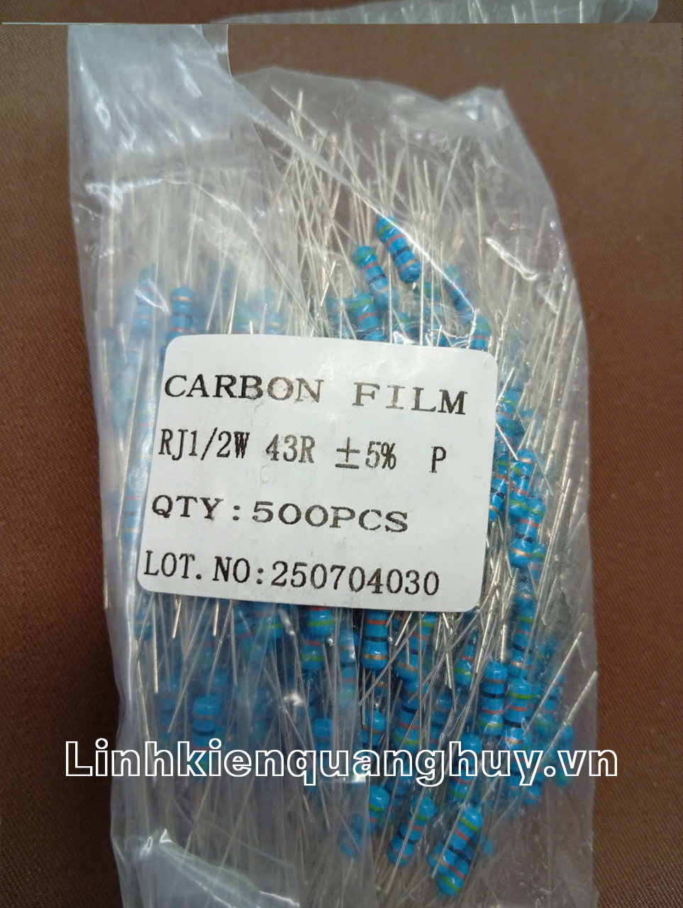 - Trị số 43Ω chính xác: Giá trị điện trở được xác định qua các vòng màu tiêu chuẩn (Vàng – Cam – Đen – Kim nhũ) với sai số thấp, đảm bảo các thông số kỹ thuật của mạch luôn chính xác.