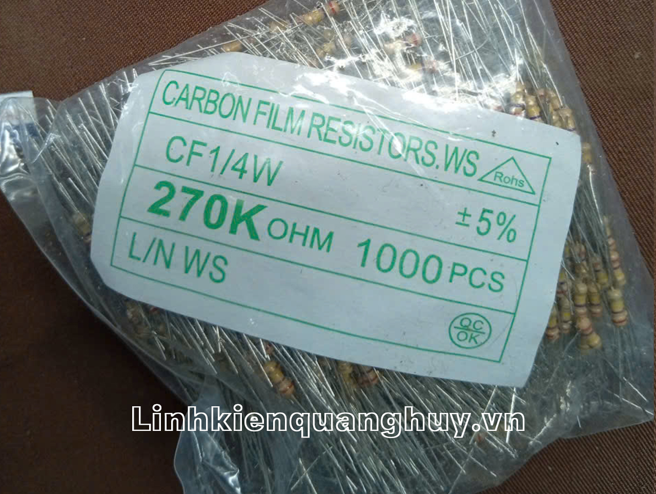 - Nhận diện mã màu sắc nét: Hệ thống 4 vòng màu tiêu chuẩn (Đỏ – Tím – Vàng – Vàng kim) được in rõ ràng, giúp kỹ thuật viên nhận diện nhanh thông số 270K mà không cần dùng đến thiết bị đo.