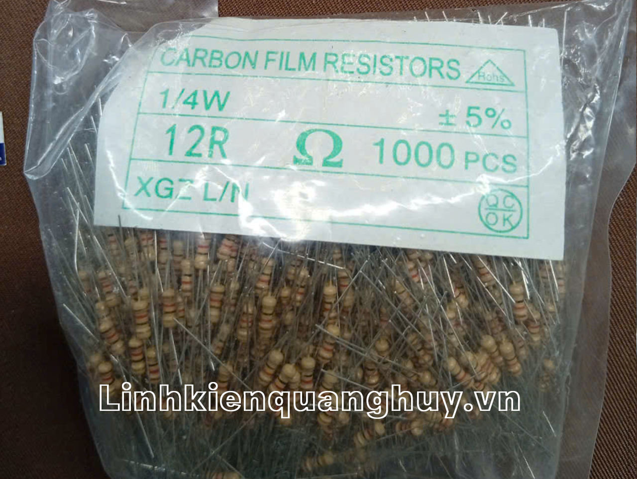 - Giá trị điện trở 12Ω (12R), nhận biết qua vạch màu tiêu chuẩn